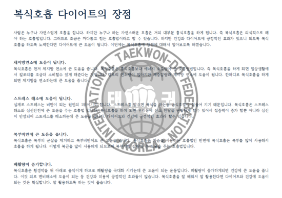 일반적으로 많이 수련하는 태권도 방식과는 다르게