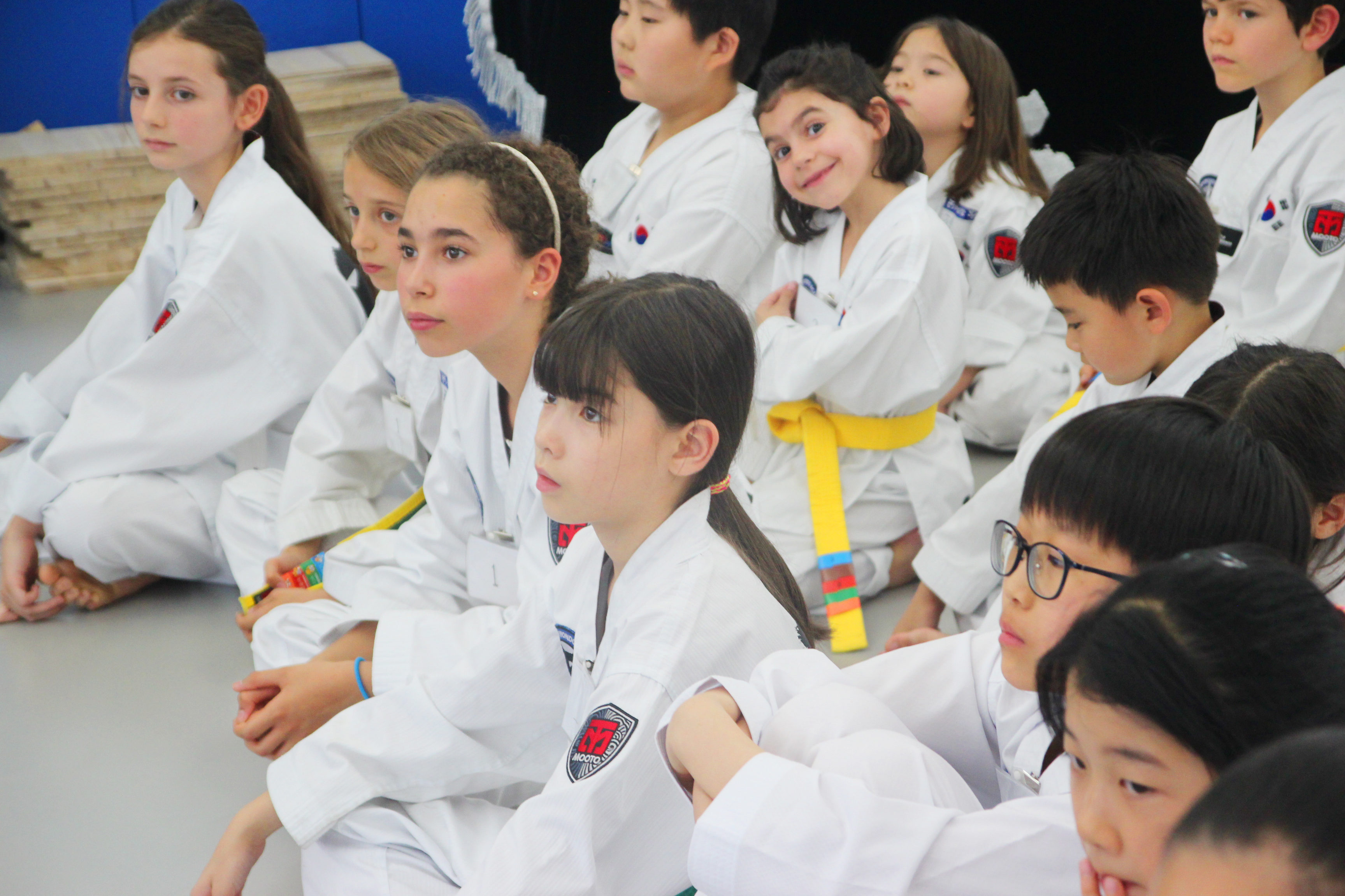 승급심사 전 공지사항을 듣고있는 수련생들의 모습입니다