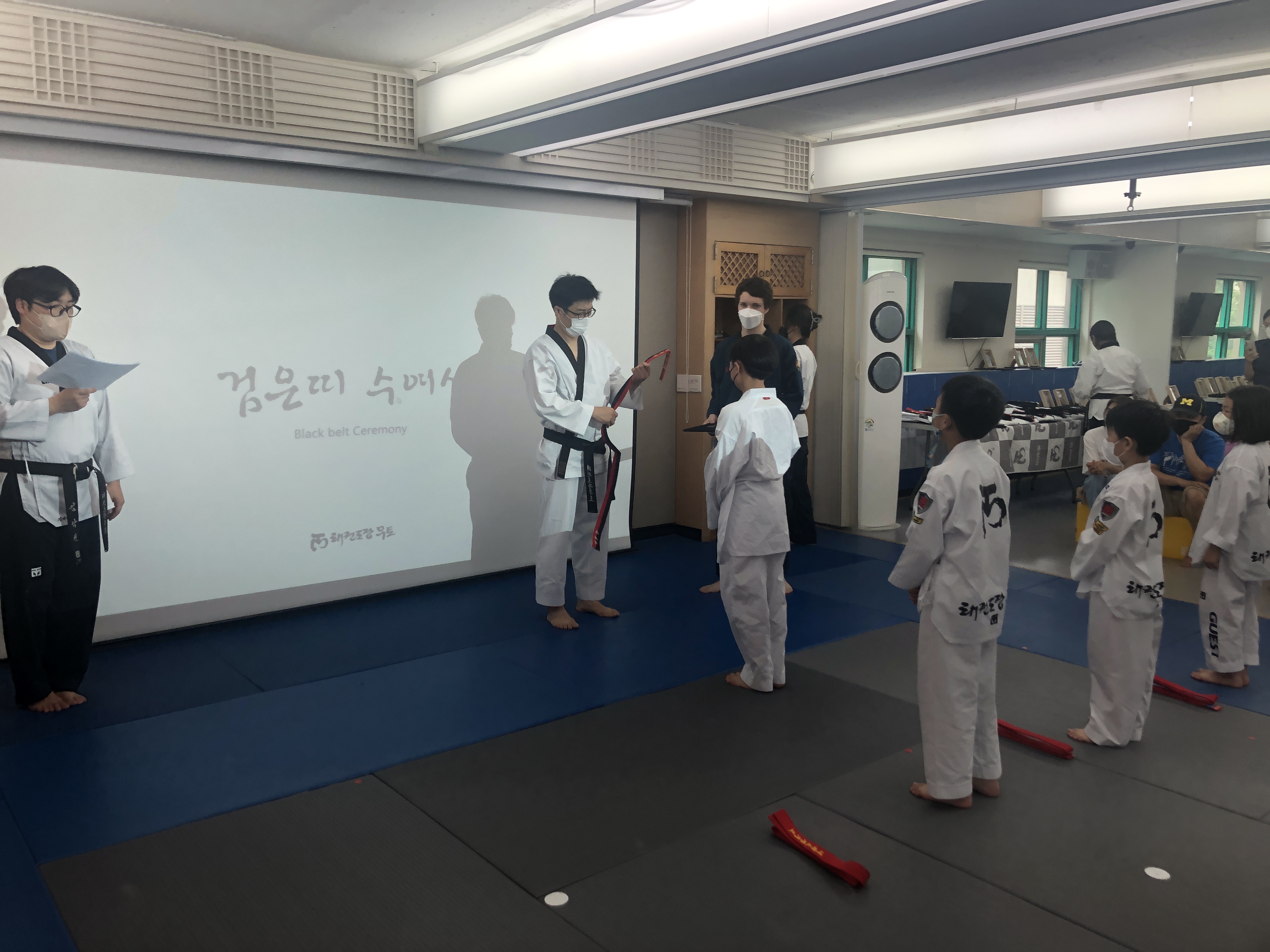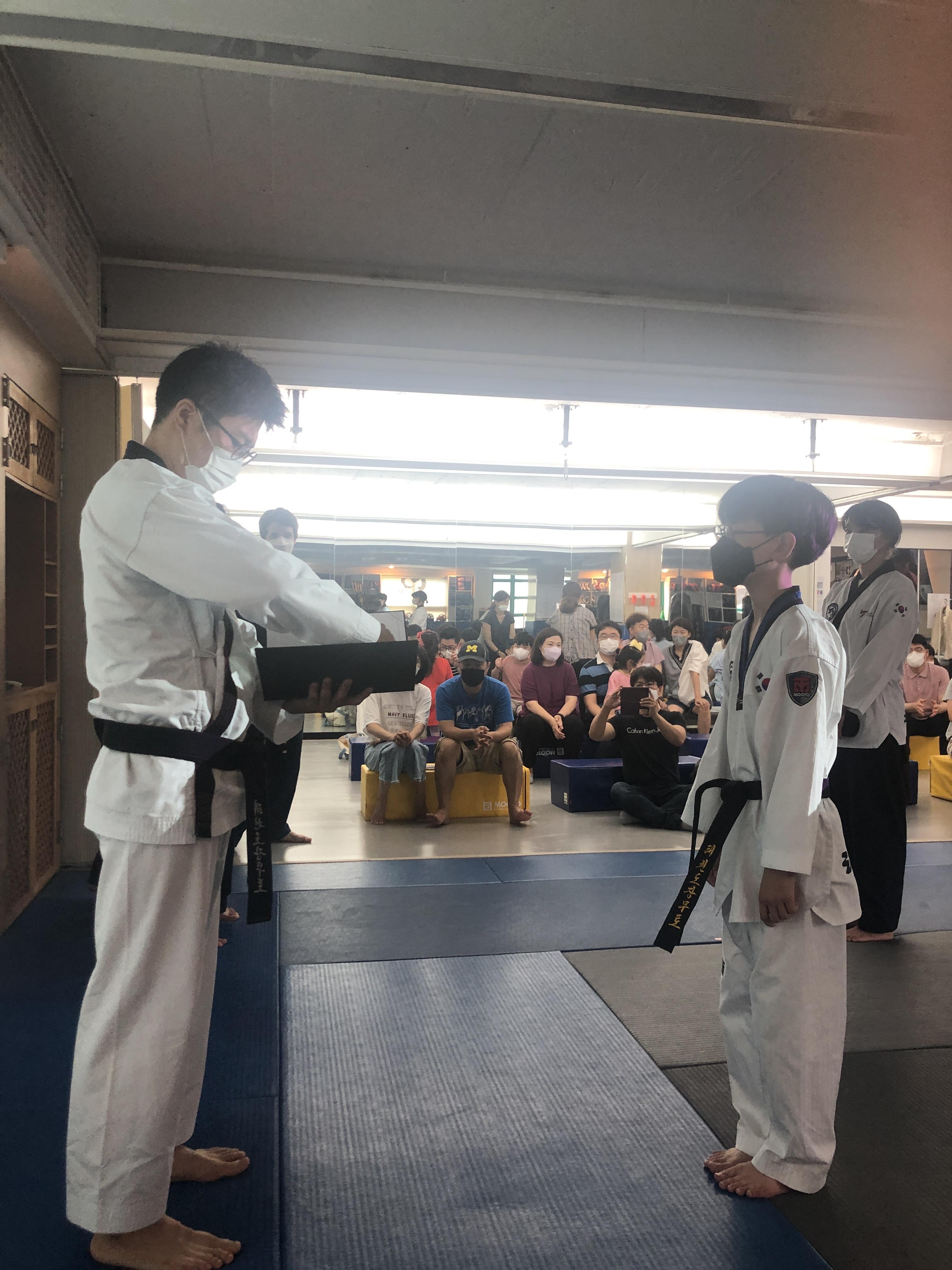 다음으로는 승단식 행사의 하이라이트인 검은띠 수여가 있었어요!!!