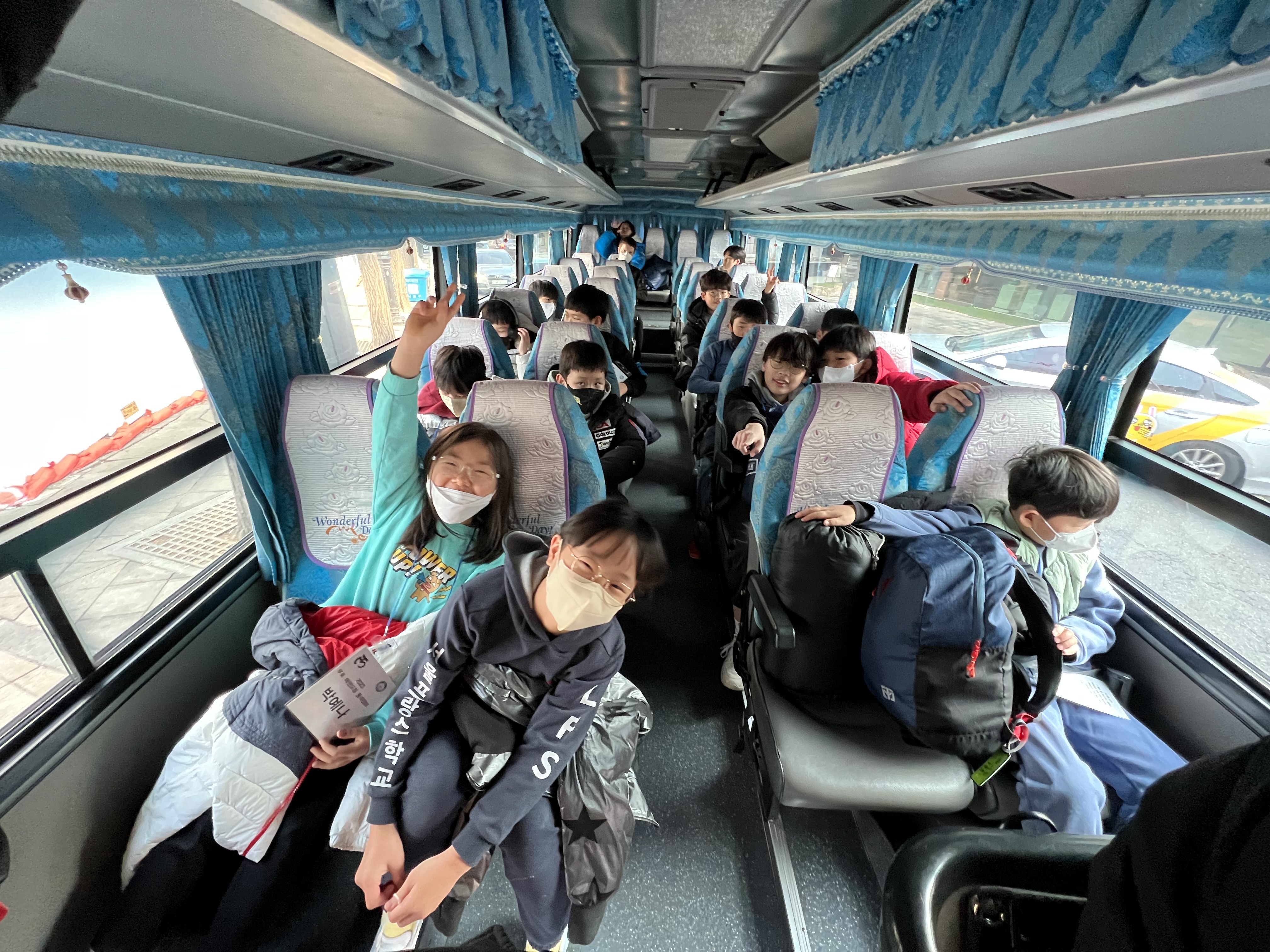 제일 먼저 즐겁게 커다란 버스를 타고 출발~~