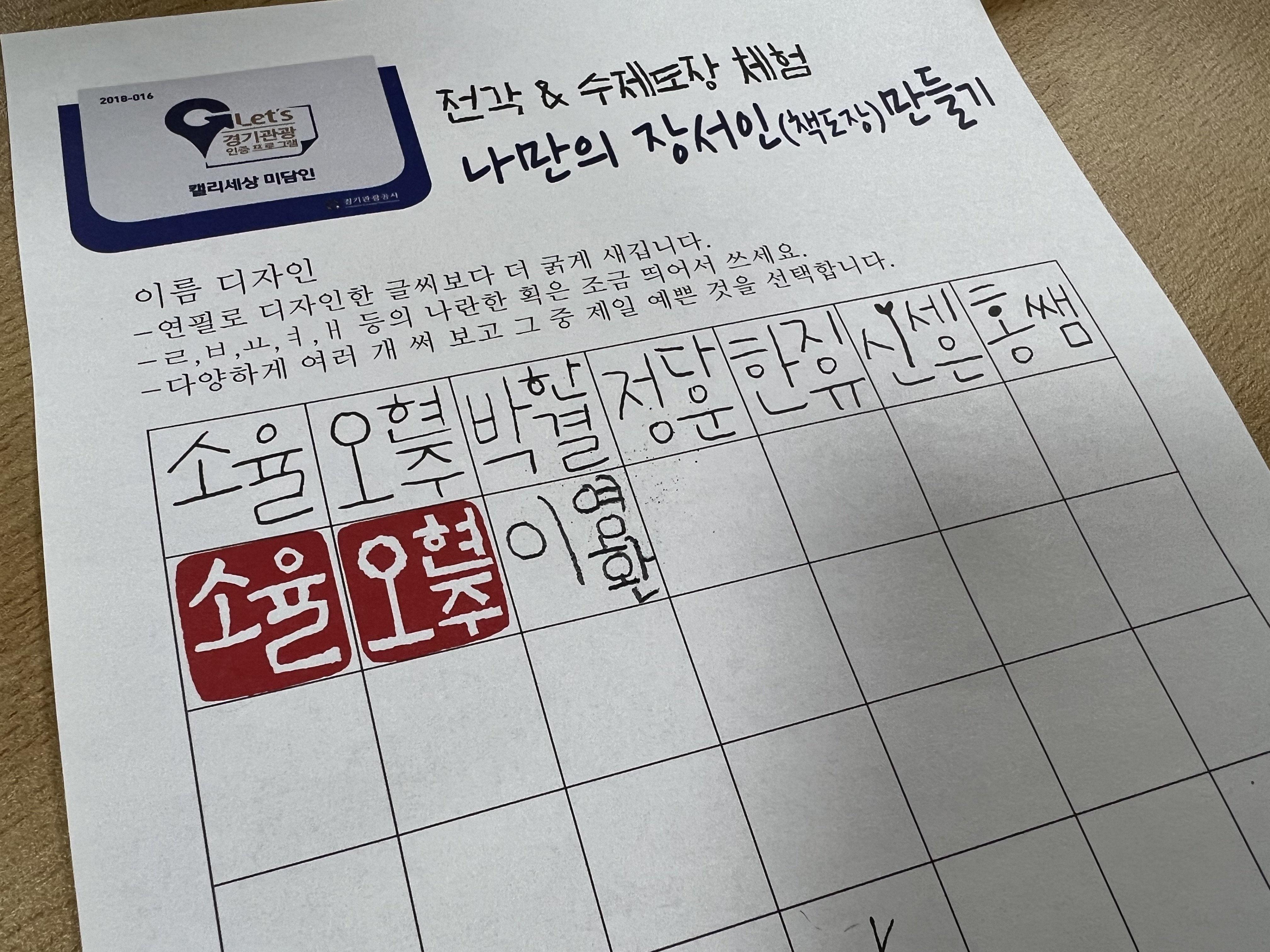 다음으로는 도장 만들기 체험을 했어요!!!