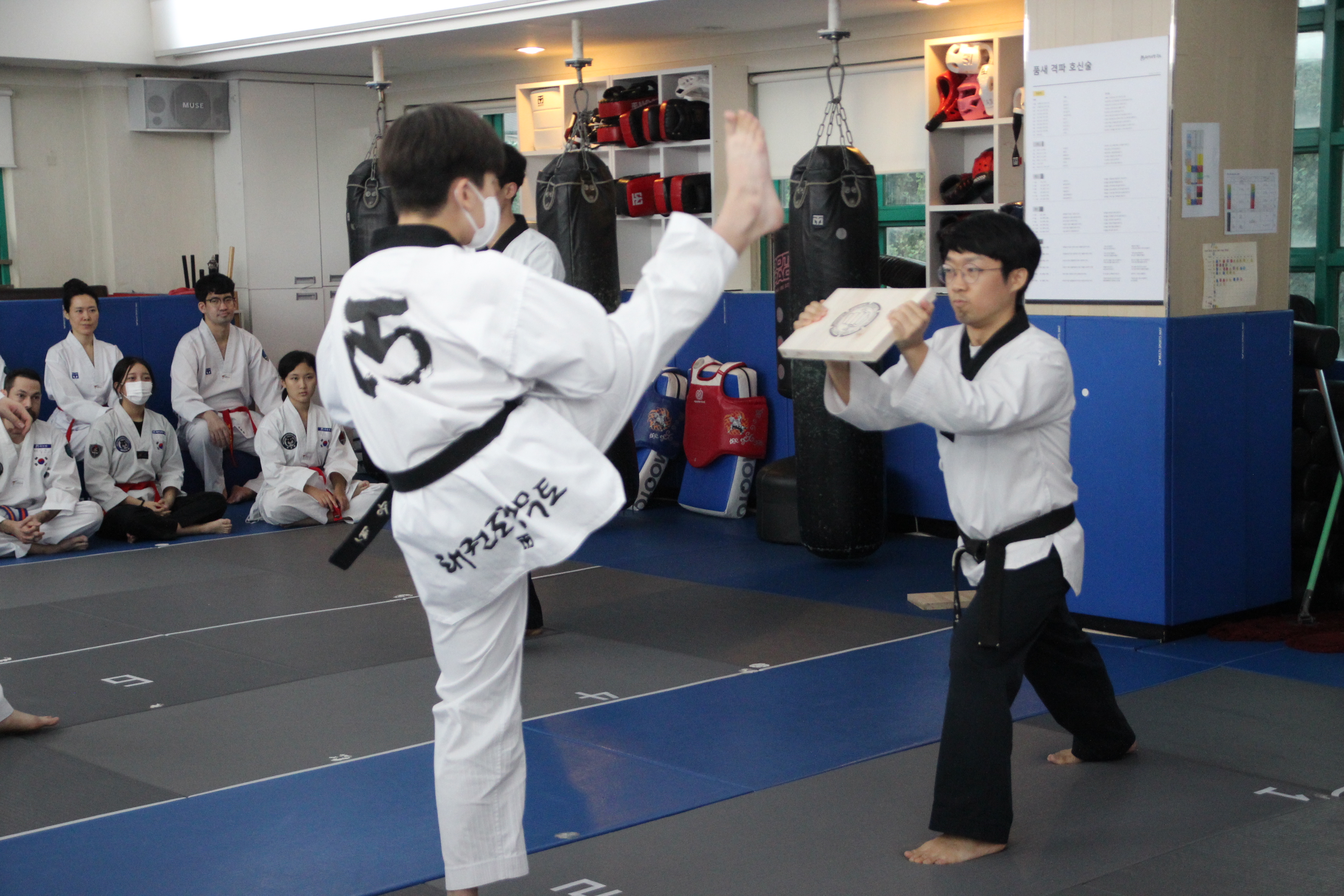 다음으로는 유급자 수련생분들의 품새, 격파, 실전타격 심사가 있었어요!!