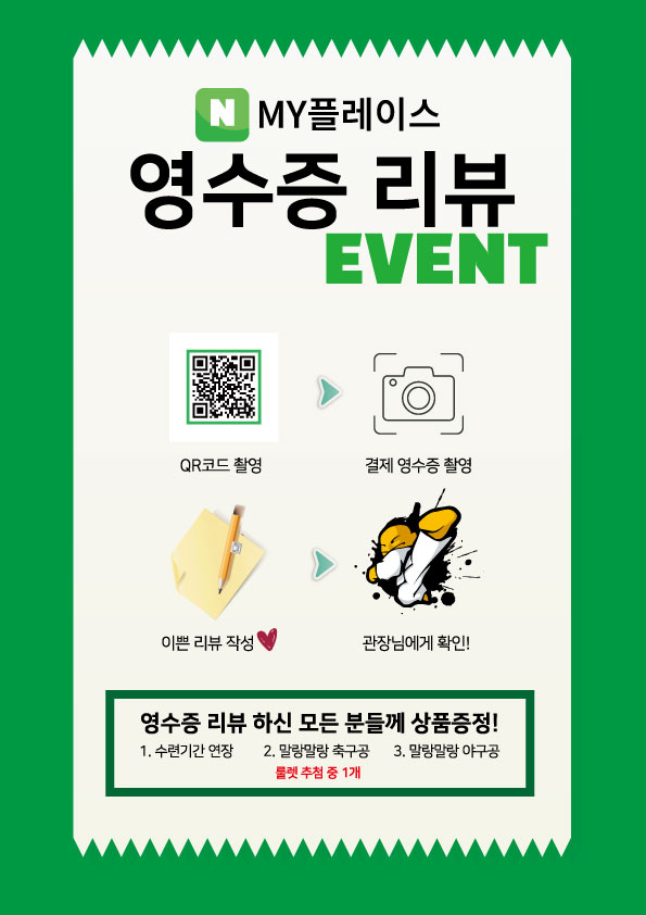 앞에 QR코드를 찍어 주세요~ 그리고 영수증 인증!!!