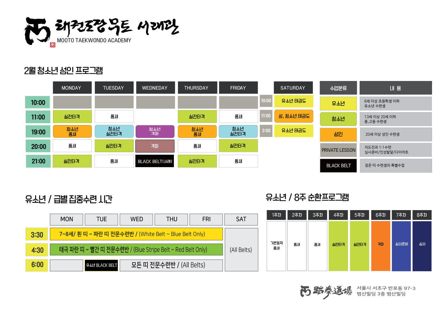 [성인태권도장 무토] 2026년 2월 수련시간 안내 본문