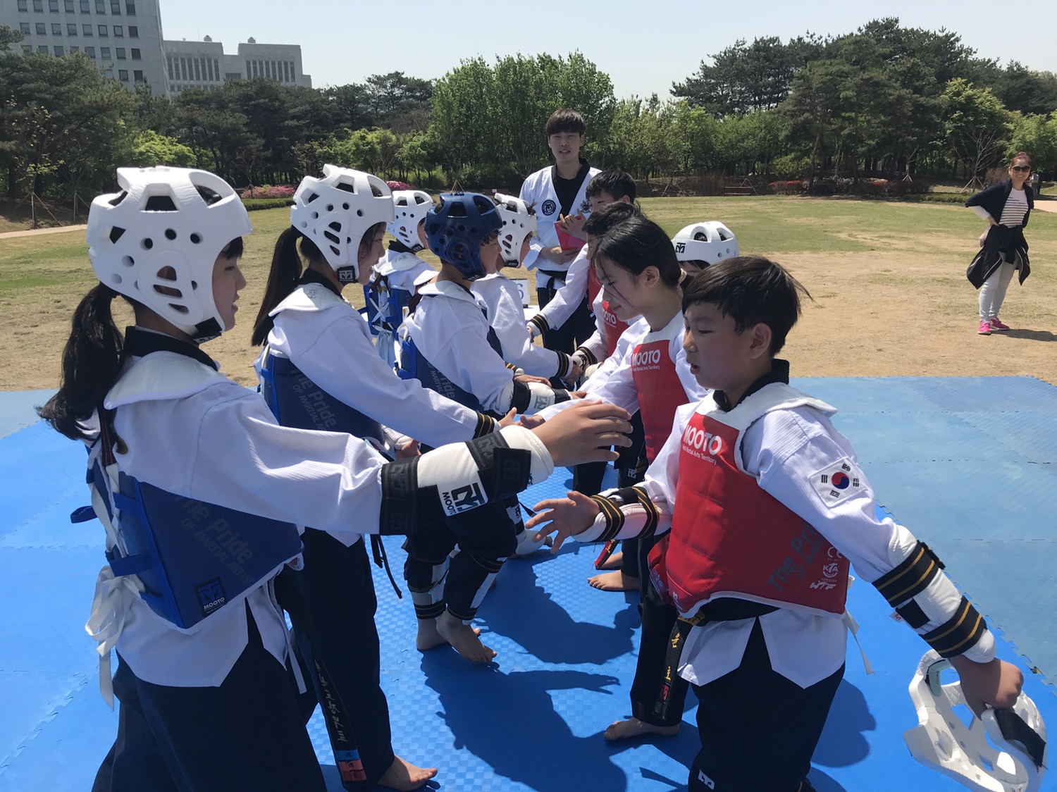 야외에서 태권도를 수련하는 시간을 가지는 것입니다
